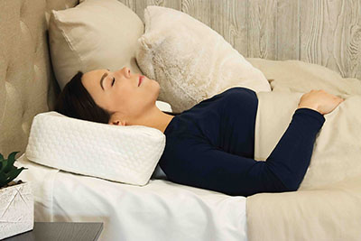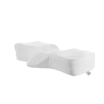 The Ultimate Cervical Support Pillow combines the best features from fiber and foam pillows to create the ultimate pillow for support and comfort! This non-allergenic foam pillow provides proper alignment of the neck and supports the head while sleeping to help alleviate headaches and neck pain. The orthopedic design helps relieve a variety of conditions affecting the neck and shoulders. It is also ideal for CPAP users. For back sleeping, choose from one of the four distinct neck roll supports to find the one that fits your body and neck best. The shaped center gently cradles the head for comfortable sleep. Increase or decrease the amount of support by simply rotating the pillow to a larger or smaller neck roll. Gradually increase cervical correction by using a larger roll. If at any time you experience increased neck pain, reduce the amount of support by using a smaller neck roll or a traditional sleeping pillow. For side sleeping, large side sleeping areas with two distinct heights help keep the head level for proper alignment of the spine. These side surfaces feature airflow channels which gently cushion your face and ear for comfortable sleep. Channels on each side of the pillow help reduce pressure on the jaw, making it more comfortable for people with TMJ or jaw pain. For side and back sleepers, enjoy a smooth transition when moving from side to back sleeping or vice versa. Plus, you will benefit from all the features designed specifically for back or side sleeping. For CPAP users, a distinct edge allows a CPAP mask and hose to comfortably drape over the side of the pillow. This helps prevent mask and pillow interference and keeps the CPAP mask from moving or placing excessive pressure on the face. The Ultimate Cervical Support Pillow's unique molded foam provides a firm foundation with a surface that is soft to the touch. The pillow comes with a machine washable, soft, fitted, zip-open cover that is easily removed for washing. It may take some time to adjust to this cervical pillow and immediate overuse may increase neck pain. Those who slowly ease their way into orthopedic correction, by alternating between this pillow and their current pillow, achieve the best results. Head cradle is not intended for side sleeping and may cause neck pain.
