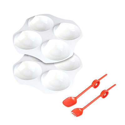 This large accessory bundle provides an additional 2 Plates, 1 Large Spoon, and 1 Spork for the Obi Robot feeder. Obi is the first robotic dining companion of its kind. As eating is one of life's great pleasures and a basic human need, Obi is a revolutionary dining device for people living with physical challenges. For loved ones or patients suffering from Cerebral Palsy, ALS, Parkinson's or any other condition that impairs upper extremity motor control, Obi provides an independent dining experience. The plates align with and are inserted into the Obi placemat for proper functionality. They feature four bowls for food to be placed and from which the user can choose. Obi is appropriate for both adults and kids. The plates are microwave safe and the plate, placemat and spoons are all dishwasher safe. All foods and liquids are compatible with Obi. However, foods need to be prepared and cut into pieces no bigger than 0.75" x 0.75" x 0.75" or smaller. The ideal size is between a pea and a grape. Larger sizes decrease the capture efficiency of the spoons. Obi can deliver food to a maximum height of 15.3" above the mounting surface and a maximum low of 2" below the mounting surface. The device has a maximum reach for food delivery of 16" from the edge of the plate. The Obi is Latex-free and natural rubber free.