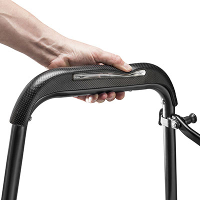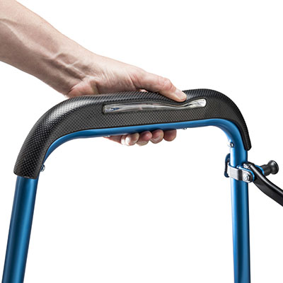 Airgonomic Comfort: Oversized hand grips are easy to grasp and feature integrated air bladders that cushion the hands. Convenient Seating: Integrated, open-and-go mesh seat allows for rest anytime. Natural Stride: Curved 3/4 length seat design allows users to walk comfortably without interference. Easy, Fast Fold: The simple scissor fold design allows for compact storage and easy transportation. Improved Traction and Stability: Large, water-dispersing treaded front wheels grip the earth help maneuver through diverse terrain. Fully Assembled Out of the Box: Ready to use immediately, requiring no tools or setup for added convenience. Available in Onyx and Sapphire.