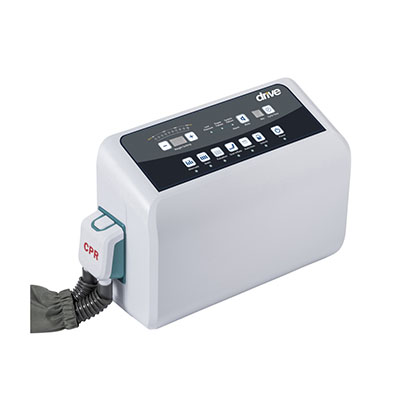 Feature filled True Low Air Loss active blower system for optimal microclimate control and patient comfort also provides pulsation and alternating pressure to optimize pressure redistribution and reduce shear and friction. Designed to prevent, treat and heal pressure ulcers in the home or long term care setting. Digital control unit offers 4 cycle times and adjustable comfort weight settings for optimal immersion and patient satisfaction. 3 diagnostic audio and visual alarms alert for issues with air pressure, the system, or power. System includes 20 individual air cells over a 2" foam base for power outage protection. Pillow feature provides head stability and comfort. Advanced Clinical and Care Giver Features: Seat Inflate, microprocessing feedback, lock-out and more! 8" deep air cells are easily removed for convenient servicing and inflate in under 2 minutes with Autofirm feature for quick delivery and set up. Silver Ion Stretch Cover permanently kills 99.5% of germs, is fluid resistant, low shear and vapor permeable helping protect this skin from friction and moisture. CPR valve allows for rapid deflation. Side loop cable management system reduces tripping hazard. Handy, durable carrying bag included with each system.