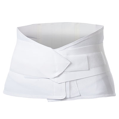 AliMed Lumbosacral Support Plus features breathable, elastic side-panels with a soft flannel back panel. 4"H overlapping, adjustable tension strap wraps around patient for added support and compression. 10" back height tapers to a 6" front height. Four adjustable metal stays are contoured for added lumbar support. Plastic side-panel stays prevent rollover. Not made with natural rubber latex. Hand-wash, air-dry. White. Sizing: Measure circumference of hips at widest point. Due to wide range in waist and hip size in many patients, a smaller or larger size may be needed for proper fit. Small: 28"-32". Medium: 32"-36". Large: 36"-40". X-Large: 40"-44". 2X-Large: 44"-48". 3X-Large: 48"-52". 4X-Large: 52"-56"5. 5X-Large: 56"-60"
